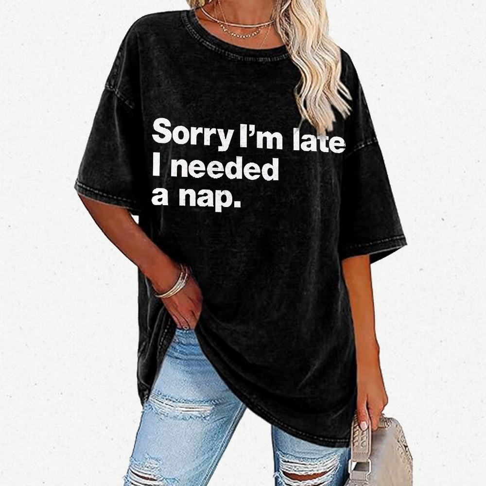 Sorry I'm Late I Needed A Nap Vintage Distressed T-shirt