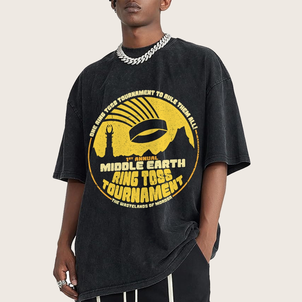 Middle Earth Ring Toss Tournament Vintage Distressed T-shirt