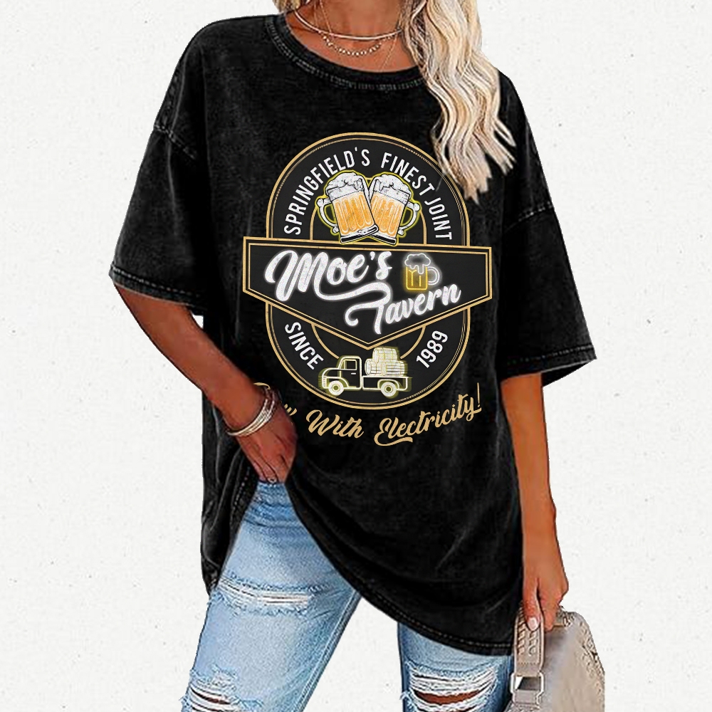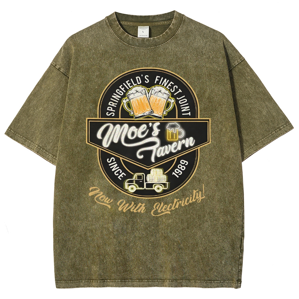 Moe's Tavern Now With Electricity Vintage Distressed T-shirt